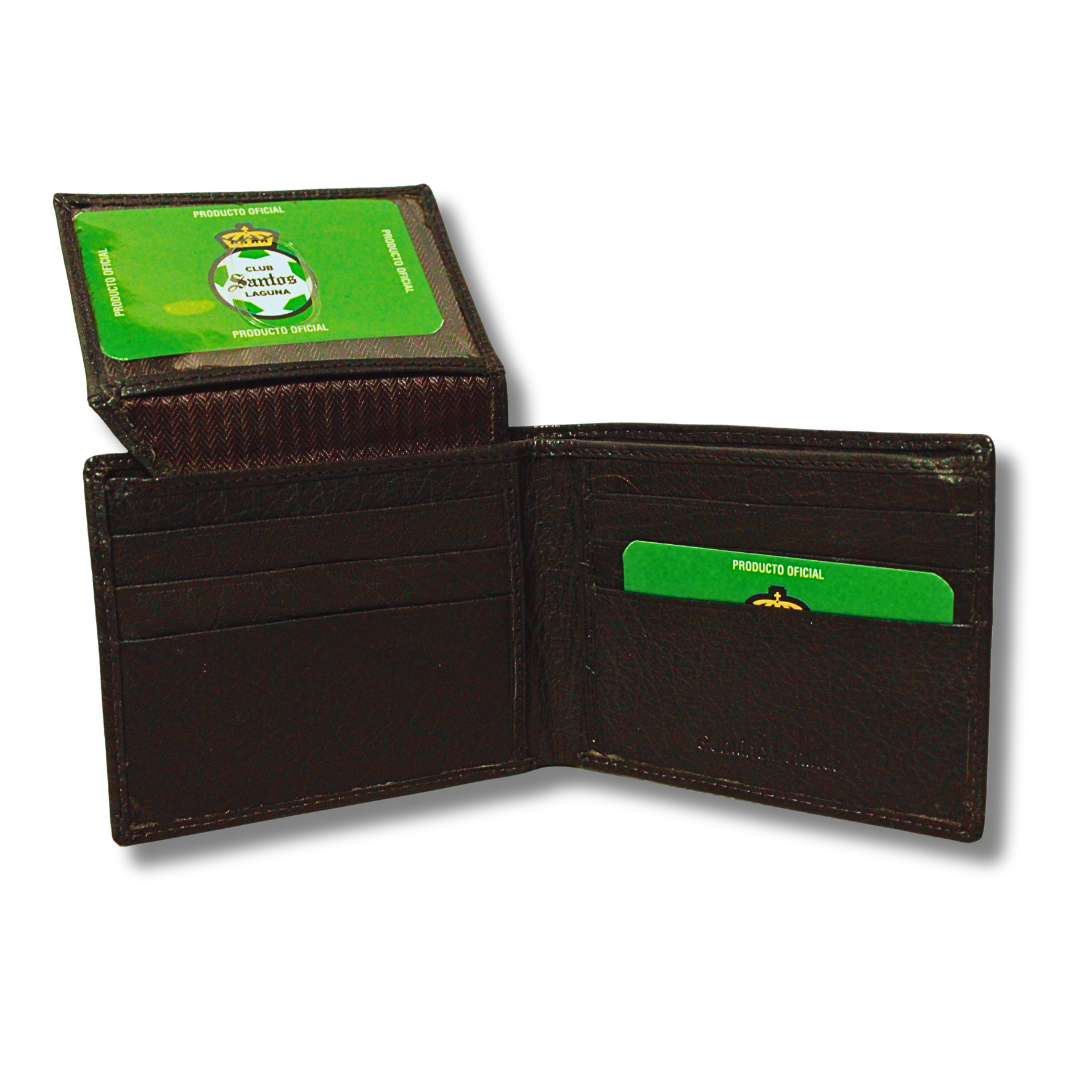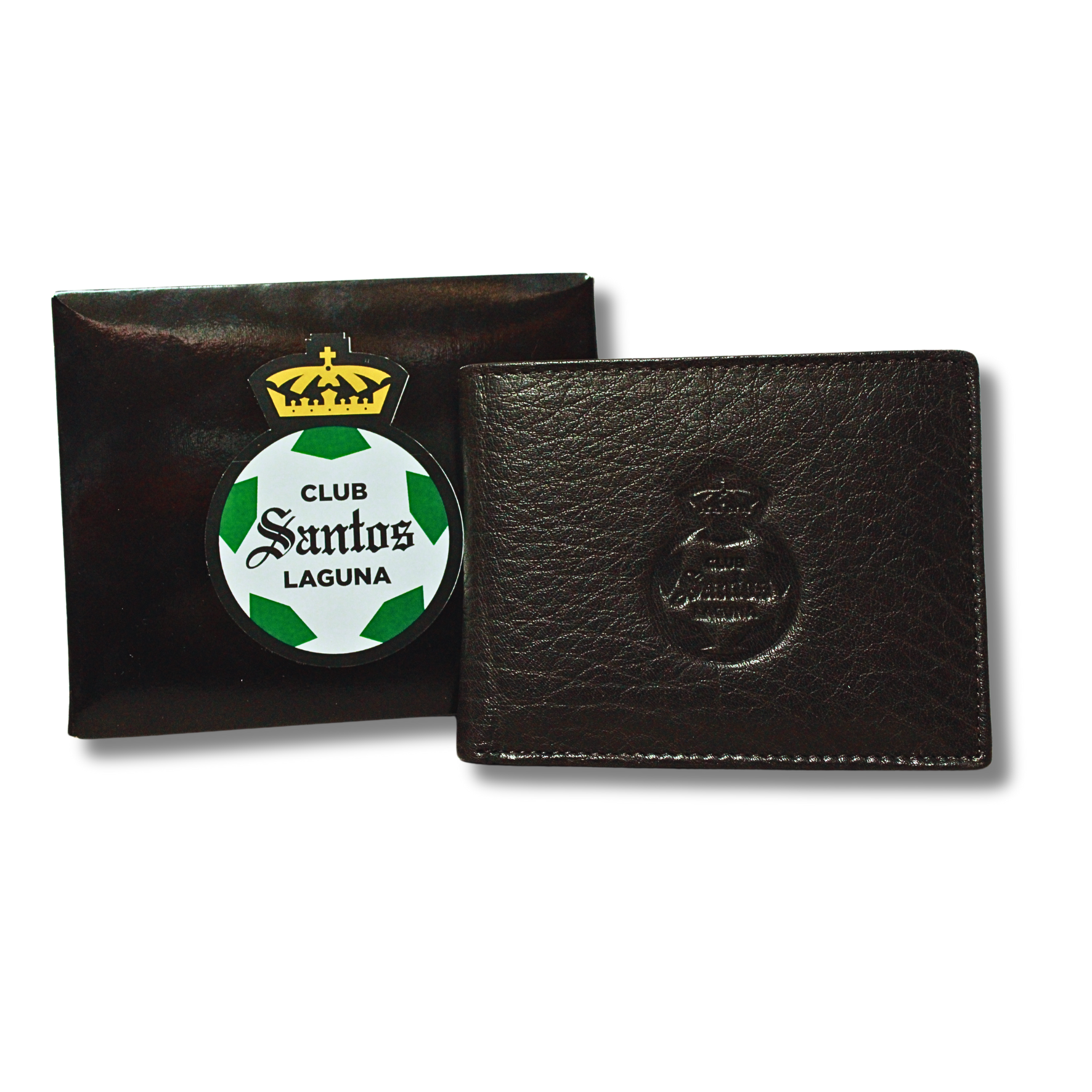 La cartera viene en una caja personalizada con el escudo oficial de Club Santos Laguna